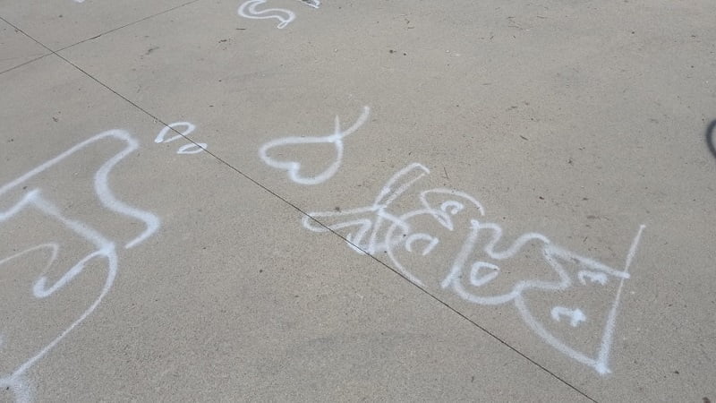 Ieri pomeriggio la seconda amara sorpresa: i volontari hanno trovato la pavimentazione esterna, e non solo, del retro della struttura polifunzionale ricoperta da scritte offensive ed altre incomprensibili realizzate con bombolette spray di colore nero.