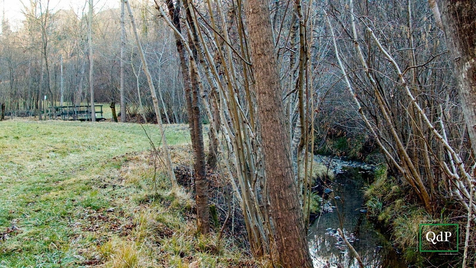 In un bel pomeriggio invernale, la zona limitrofa alle cosiddette acque morte appare divisa tra raggi di sole e fasce d’ombra, che consentono di vedere fenomeni contrastanti: da un lato i ruscelli gelati e immobili e dall’altro un anticipo di primavera.