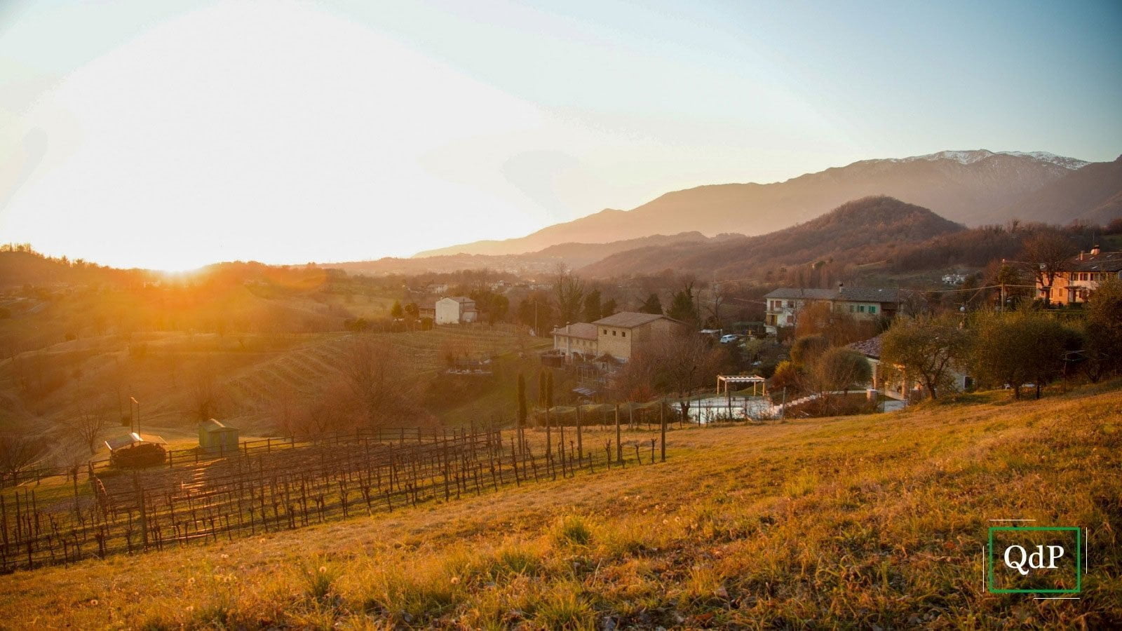 La camminata prosegue fino a inerpicarsi fino all’ultima collina, tra filari di viti, e raggiungere via Longon: da quel punto, la valle si apre sia in una direzione che nell’altra ed è piacevole, specialmente al tramonto, quando l’orizzonte dalla Rocca di Asolo al profilo maestoso del Massiccio del Monte Grappa si screzia di arancio.