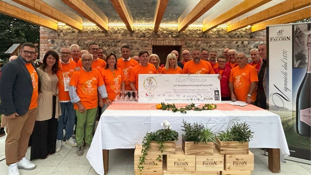 L’evento si è svolto in un clima di festa, con la vendemmia tradizionale seguita da una cena solidale il cui ricavato è stato devoluto a LILT Treviso.