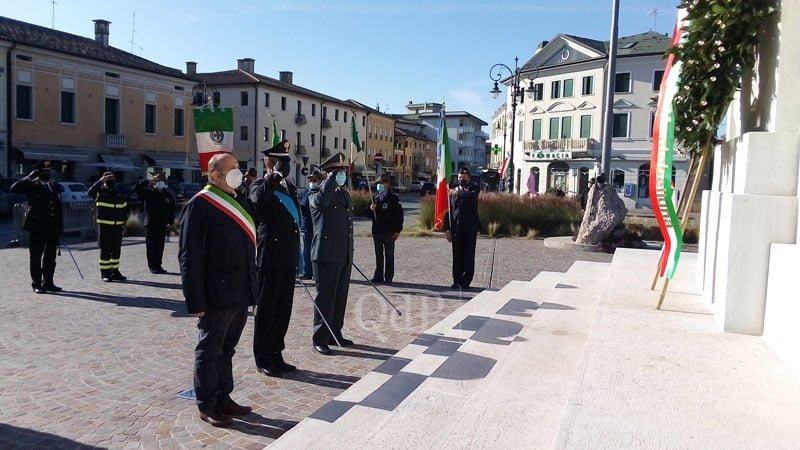 “Una guerra di trincea che ha fatto 650mila morti sul campo – ha detto Favero al termine dell’alzabandiera al monumento ai Caduti in piazza Dall’Armi -, mezzo milione di invalidi e migliaia di vittime civili. È proprio nelle trincee che è nato il vero senso di Unità nazionale, dove si sono ritrovati, loro malgrado, e hanno fraternizzato giovani provenienti da ogni parte d’Italia. Tra il 1915 e il 1918 ha mosso i primi passi la globalizzazione. Gli uomini, a causa del forte avvento tecnico e tecnologico, ha iniziato a diventare un mezzo e non un fine. Gli accordi di pace conseguenti al primo conflitto sono stati la causa della Seconda Guerra e, gli accordi di pace di quest’ultima, sono la causa delle numerose guerre locali. Non a caso tra il 1917 e il 1918 l’arrivo dei soldati americani in Spagna provocò la pandemia chiamata Spagnola che fece 50 milioni di morti”.