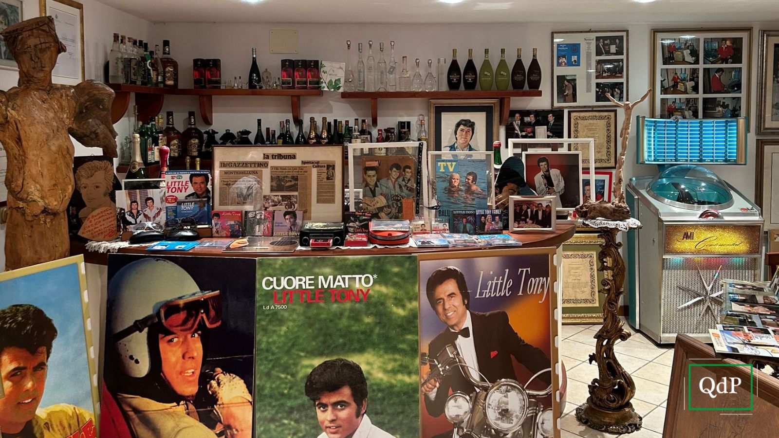 Diversi oggetti, dischi, foto, riviste, cartelloni pubblicitari, riconoscimenti e manifesti appartenuti a Little Tony (pseudonimo di Antonio Ciacci) sono conservati con cura e affetto nell’abitazione del collezionista Roberto Valerio, grande amico dell’artista.
