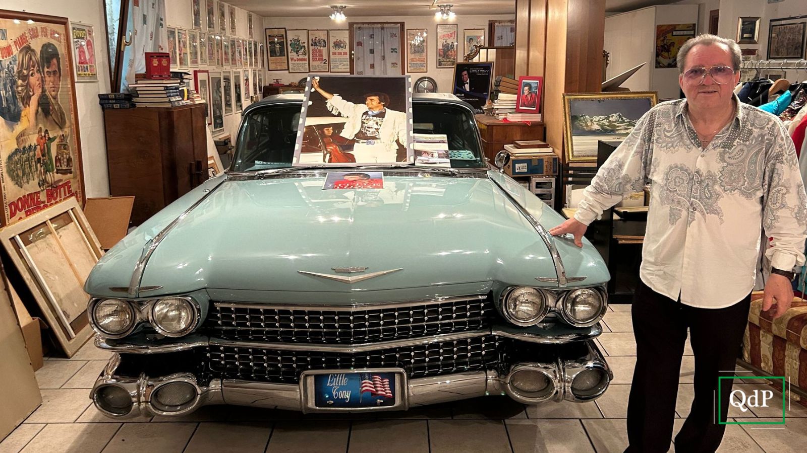 La famosa Cadillac Biarritz Cabriolet del 1959, una delle macchine preferite da Little Tony, ora si trova nell’abitazione di Valerio dove fa bella mostra di sé accanto ai grandi manifesti dell’artista.
