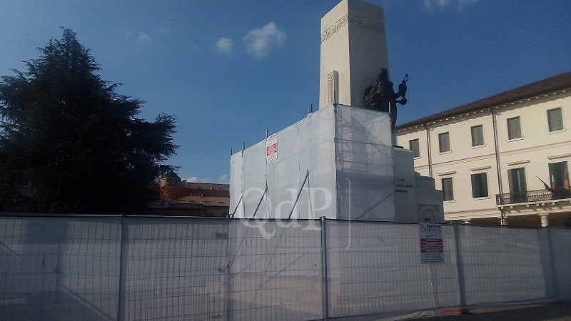 Sono iniziati ieri, lunedì 20 luglio, in centro i lavori per il restauro conservativo della scultura bronzea posta sul fronte ovest del monumento dei caduti in Piazza Dall’Armi, a Montebelluna. Il Monumento ai Caduti di Montebelluna, è progettato e realizzato dallo scultore Umberto Feltrin fra gli anni 1924/1927. Nato a Treviso nel 1884, Feltrin operò soprattutto a Roma e in America latina e morì a Roma nel 1962.