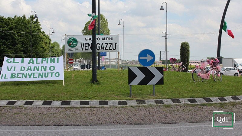 Da Montebelluna a Giavera del Montello, dove la tappa scende verso Arcade per poi risalire al Ponte della Priula, i paesi e le frazioni si stanno addobbando a festa.