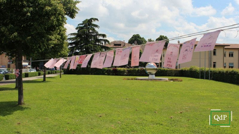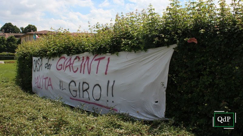 Striscioni, cartelli e palloncini tutti all’insegna del “Rosa”, come la carovana della corsa ciclistica a tappe famosa in tutto il mondo.