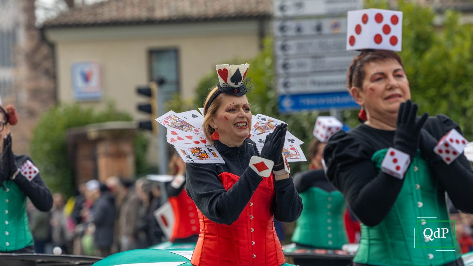 Tra i carri allegorici in sfilata figuravano la Pro Loco di Trevignano “Pochi ma boni” con “I colori delle stagioni”, il Gruppo Allegorico I Rabaltai di Ciano del Montello con “Roulette di coriandoli”, il Gruppo Carnevale Noi di Sala di Sala d’Istrana con “Le ali della vittoria”, il Gruppo di Falzè di Trevignano con “Sbarco in Oriente”, l’associazione Festeggiamenti di Sernaglia della Battaglia con “Tra onde e sorrisi”, l’Allegra Comitiva APS di Bidasio con “Esplorando il Carnevale”, il Gruppo Amici di Levada con “Toy Story”, gli Amici Carnevale Musano con “La vida es un Carnaval”, il Gruppo Giovani Nogarè con “The Nogarè Stones in tour”, la Pro Loco di Cornuda con “Fondale Marino”, il Comitato Carnevale Selva del Montello con “La carica dei 101”, il Gruppo Quei de Soligo con “Up Soligo vola, Up Soligo sogna”, il Gruppo Allegorico San Gaetano con “Nettuno ci può giudicare”, il Gruppo Allegorico Santa Maria della Vittoria con “Toro Loco” e la Pro Loco di Sant’Angelo di Treviso con “Zio Paperone e il tesoro che non brilla”.