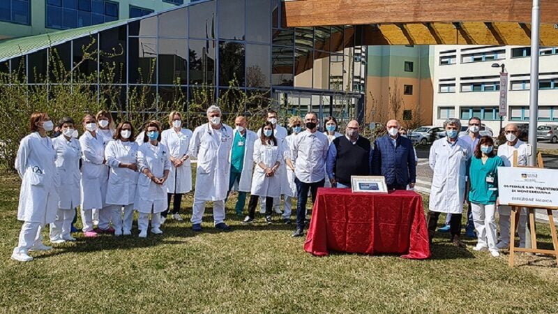 La targa è stata consegnata nelle mani del direttore dell’ospedale, Marco Cadamuro Morgante e al personale ospedaliero che lavora al San Valentino.