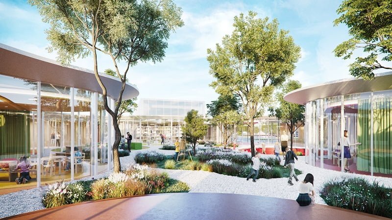 Una “scuola nel bosco”, immersa, come sarà, nel verde, dove gli alunni studieranno in un contesto naturale, “stimolati – come illustrato nella presentazione del progetto – da un ambiente vivace dove interni ed esterni generano spazi educativi accoglienti e inclusivi che mettono al primo posto il benessere degli studenti, ma anche degli insegnanti e della comunità”.