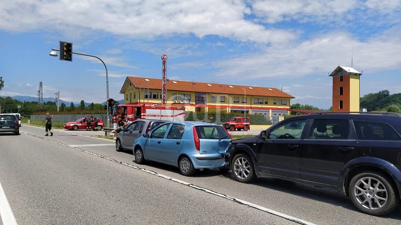 Un uomo a bordo di una terza autovettura, una Fiat Freemont, non avvedendosi delle altre due auto ferme al semaforo, ha causato un tamponamento a catena.
