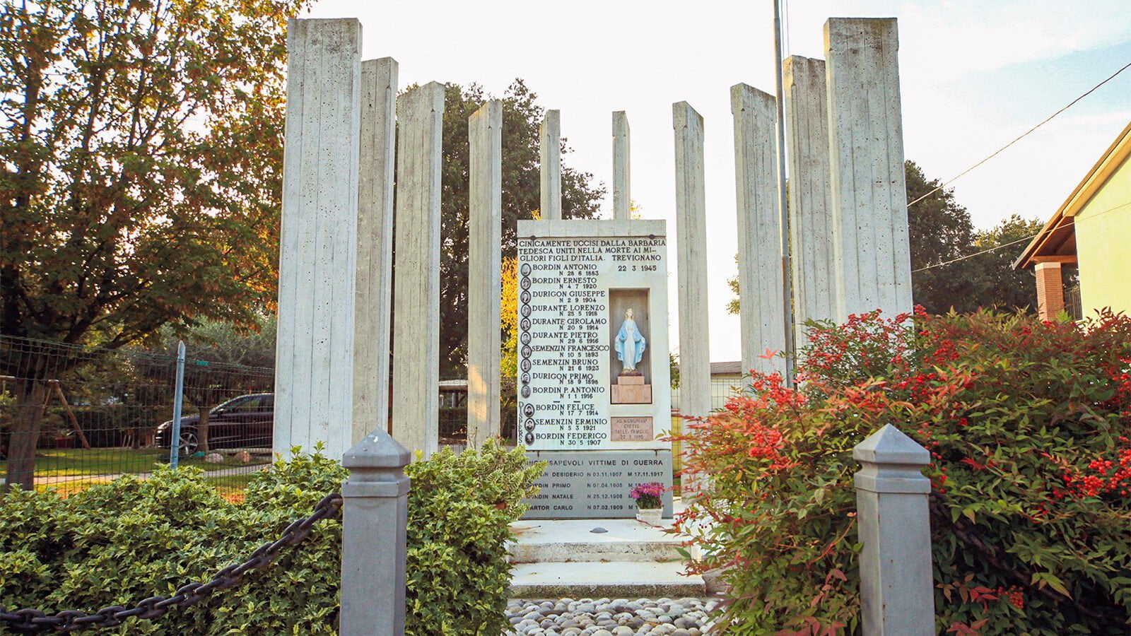 Oltre alle lapidi che ricordano il triste episodio, all’interno dell’agriturismo Cavedin i cittadini di Trevignano, lo scorso anno, hanno fatto erigere un monumento dedicato alle vittime in occasione del 50esimo anniversario della strage.