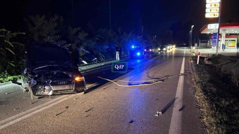 Schianto nella notte in Pontebbana: auto abbatte palo, una seconda trascina i cavi