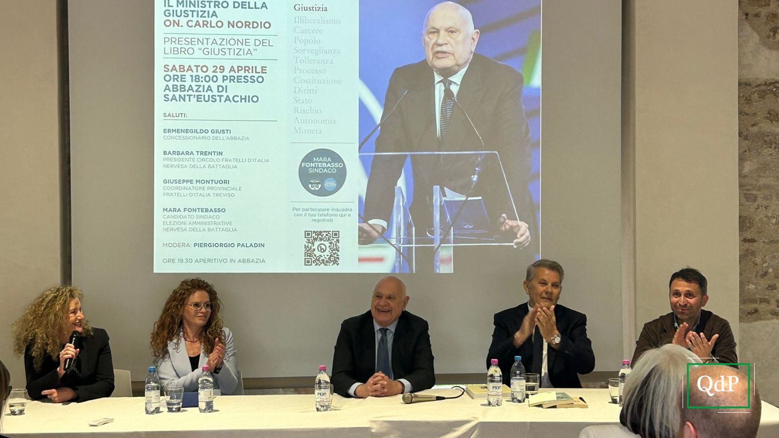 Nel pomeriggio di ieri, sabato 29 aprile, il ministro della Giustizia Carlo Nordio è arrivato a Nervesa della Battaglia per sostenere il candidato sindaco di Fratelli d’Italia Mara Fontebasso. Nella suggestiva cornice dell’Abbazia di Sant’Eustachio ha parlato delle problematiche riguardanti il “Sistema Giustizia” in Italia.