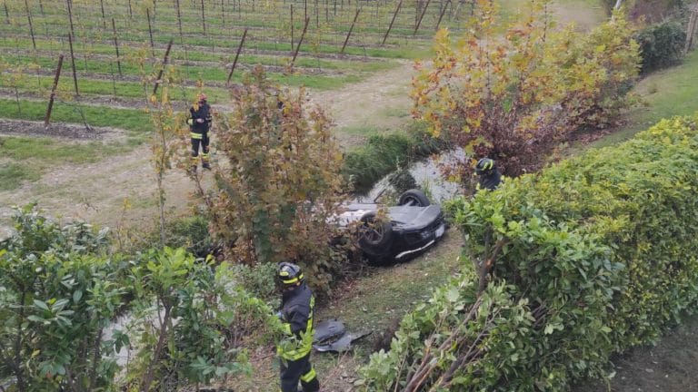 Esce di strada, l’auto si ribalta: conducente estratto dai Vigili del Fuoco