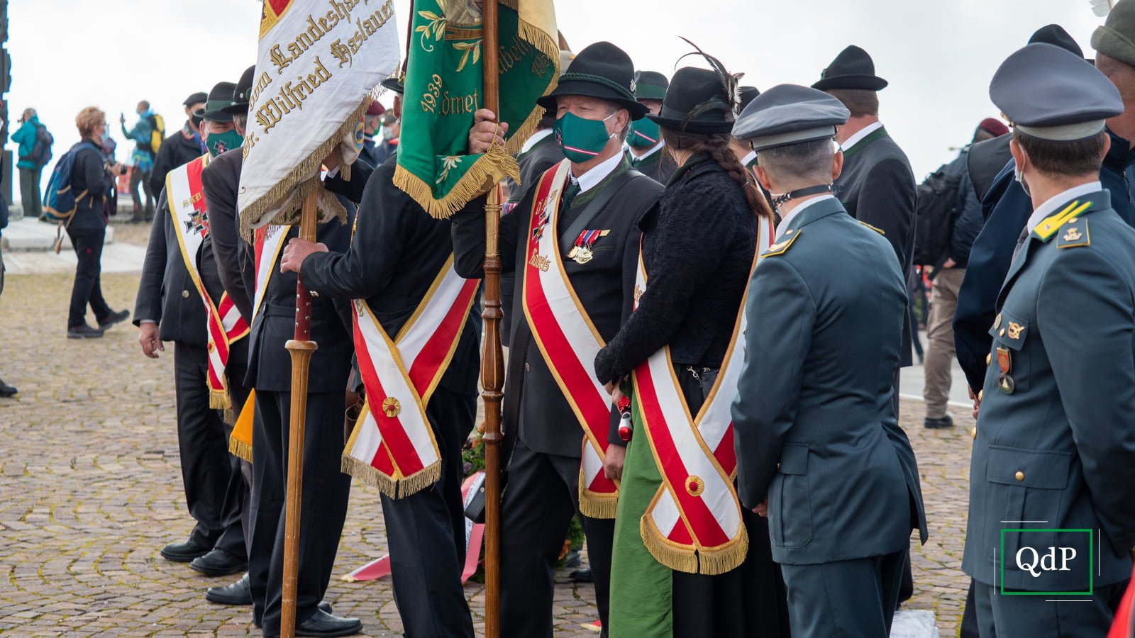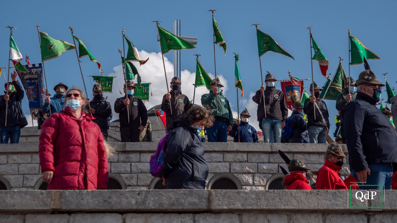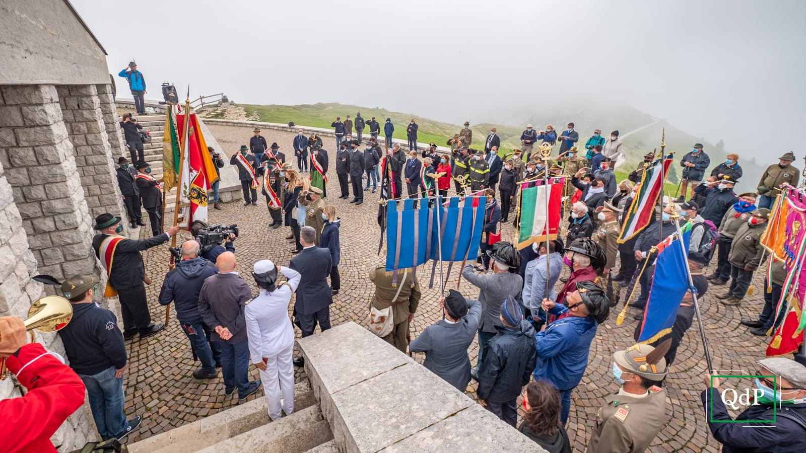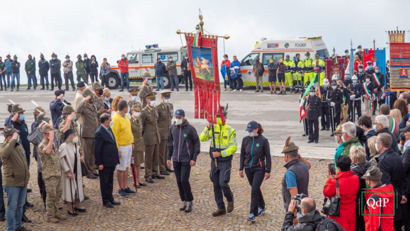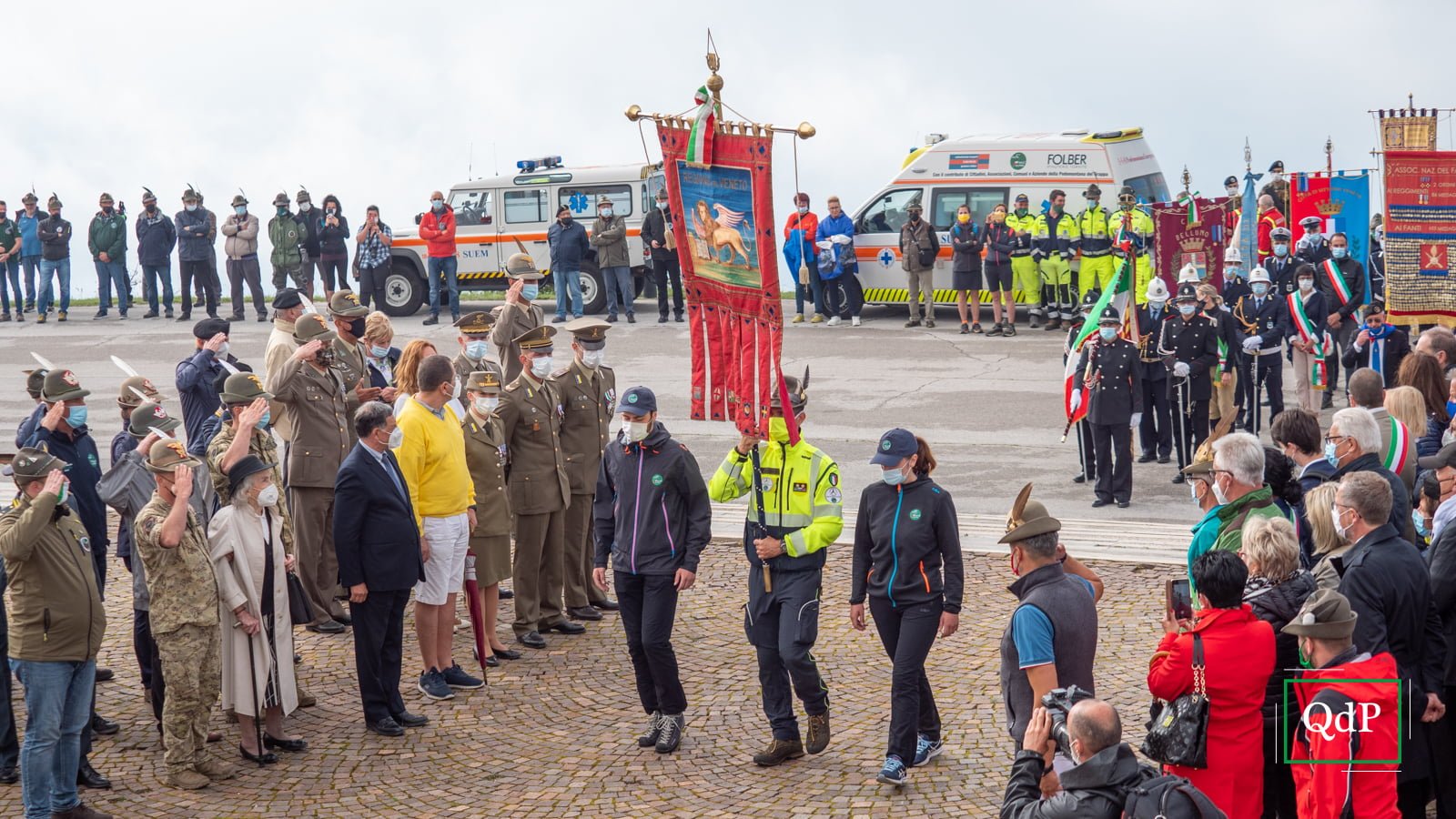 All’arrivo delle autorità, tra cui l’ospite d’onore, il generale di Corpo d’Armata Francesco Paolo Figliuolo, gli schieramenti militari si sono messi sull’Attenti. Tra le fila c’erano il gruppo dei giovanissimi Allievi Volontari della Protezione Civile, il Gruppo d’Intervento Medico Chirurgico Alpino e la Società Filarmonica di Crespano del Grappa, che assieme al coro Edelweiss Ana Montegrappa hanno accompagnato musicalmente la cerimonia, suonando in apertura l’Inno austriaco, l’Inno italiano e l’Inno alla Gioia, in rappresentanza dell’Europa.