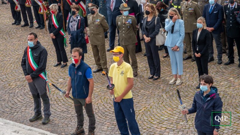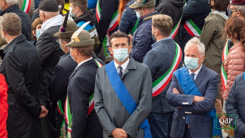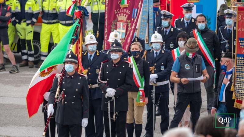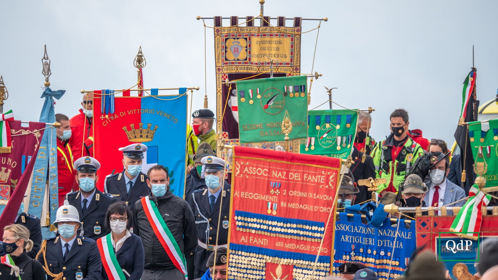 Erano numerosi anche i sindaci delle province di Treviso, Belluno e Vicenza e gli assessori in rappresentanza dei primi cittadini assenti: è stato reso omaggio alle insegne delle tre Città medaglie d’oro, Treviso, Vicenza e Vittorio Veneto, che sono state fatte sfilare sulla scalinata monumentale e posizionate attorno all’altare.
