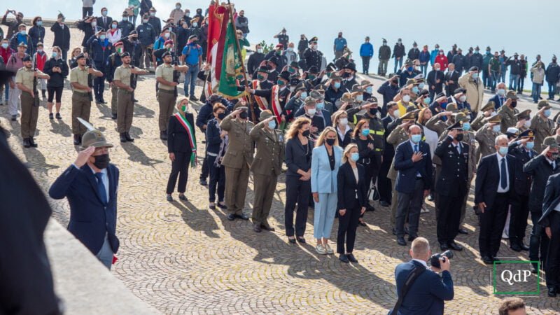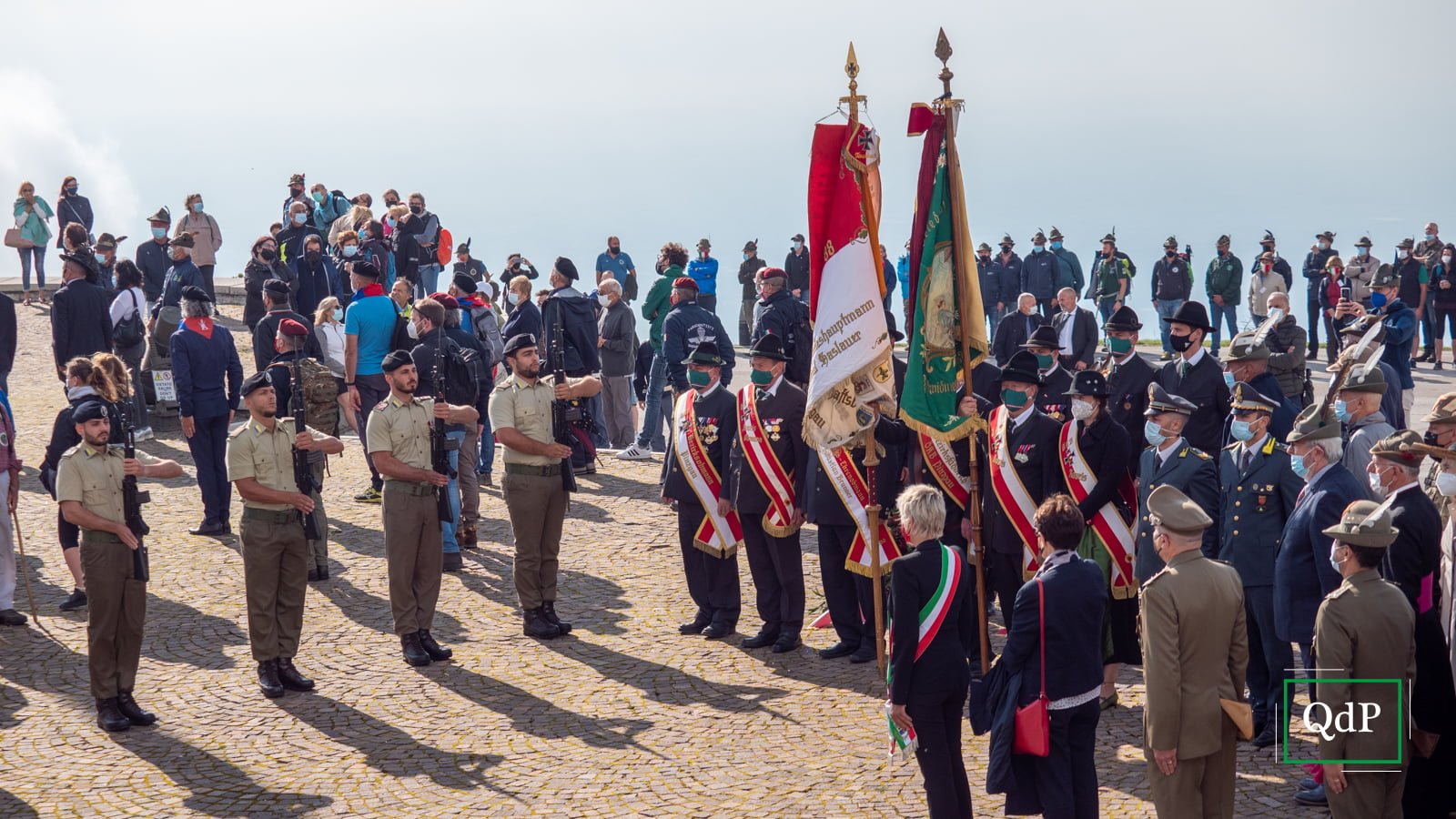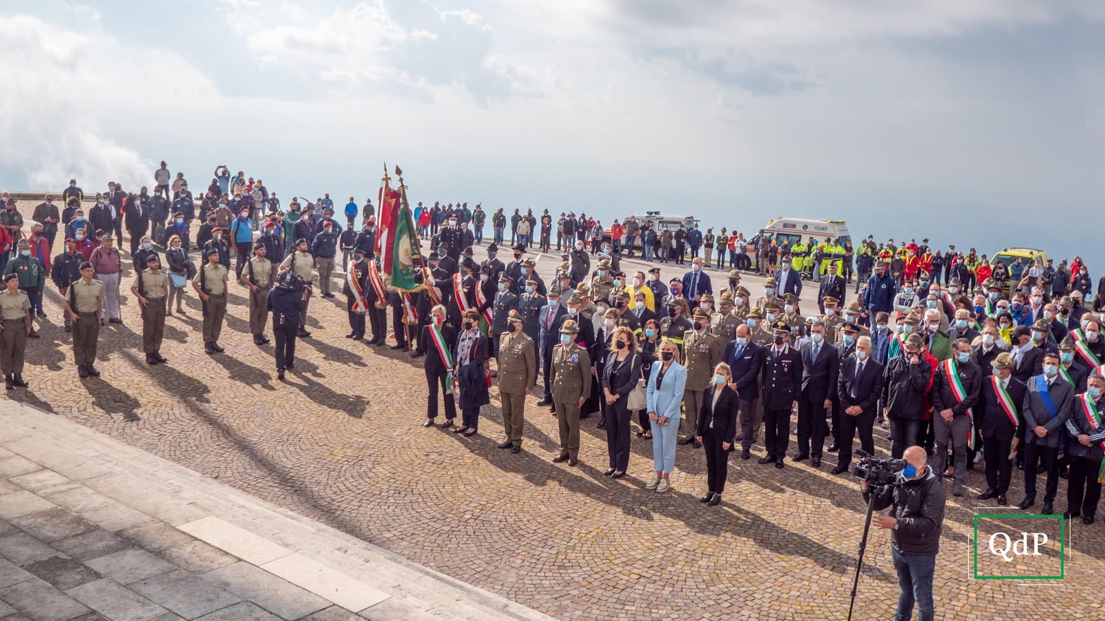 Blindata la cima del monte sacro alla Patria, con la chiusura al traffico per i non autorizzati dalle 8.30 e una massiccia presenza di pattuglie dei Carabinieri e dell’Esercito.