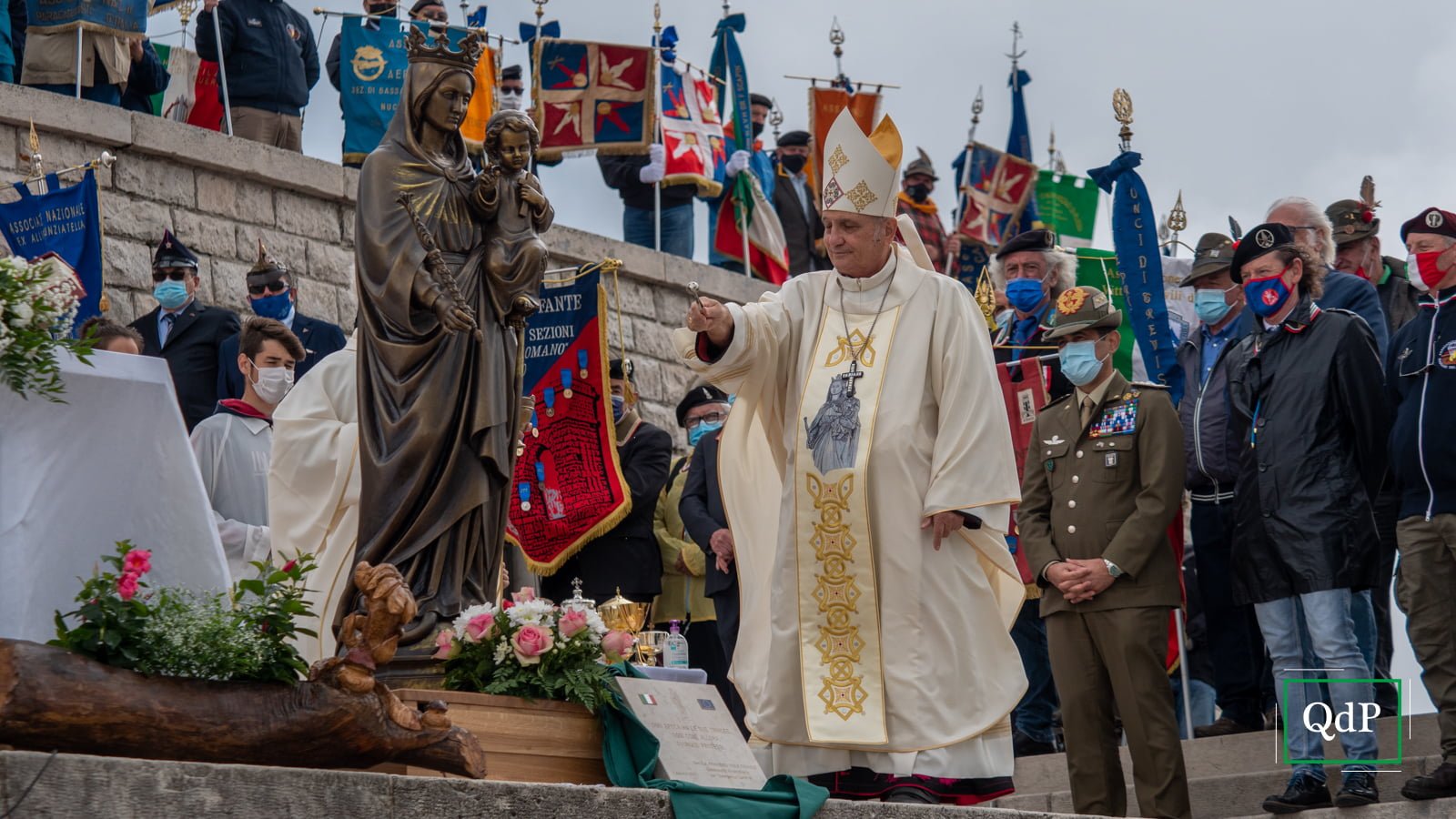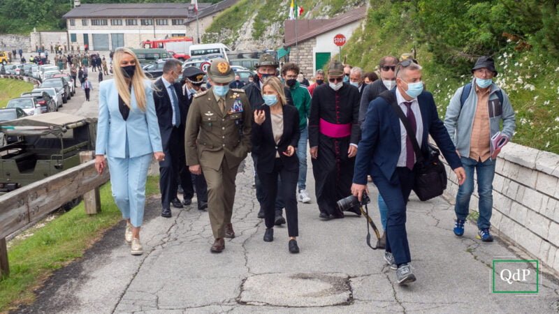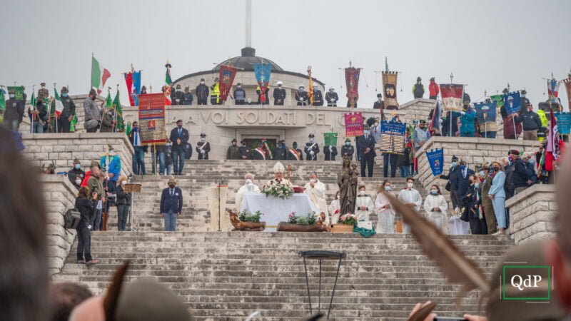 Il generale Figliuolo, accanto al sindaco di Pieve del Grappa Rampin, ha inaugurato una stele votiva dedicata alla Madonna del Grappa, portata per l’occasione nei pressi dell’altare, che riporta: “Ogni epoca ha le sue trincee. Oggi come allora, ovunque proteggi”. Sono infatti più di 23.000 le salme che riposano in Cima Grappa, molte delle quali non hanno un nome. La Santa Messa è stata celebrata da monsignor Luciano Capelli, vescovo delle Isole Salomone.