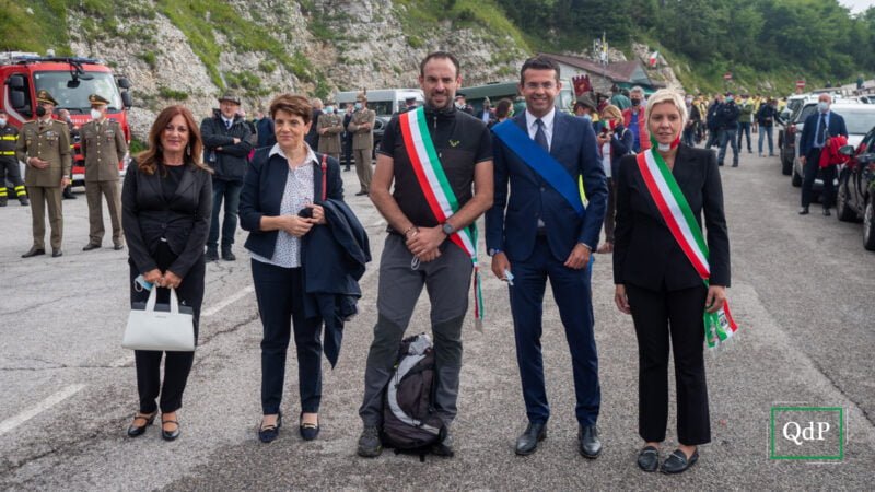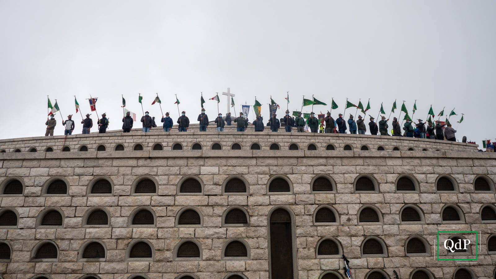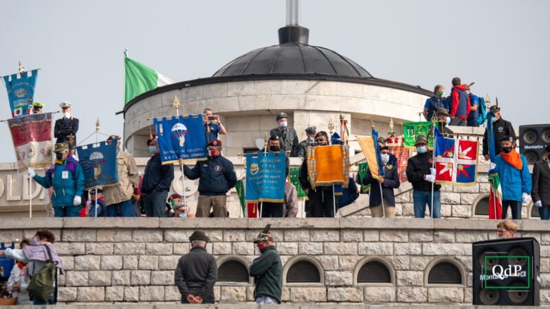 A trionfare sulla Cima sono stati gli stendardi: a centinaia, sulle gradinate e ai piedi del Sacrario, a rappresentare note di colore in una giornata grigia. Alcuni coraggiosi spettatori, tra cui il Gem Marciatori di Crespano e il sindaco di Treviso Mario Conte, hanno raggiunto la cima a piedi.