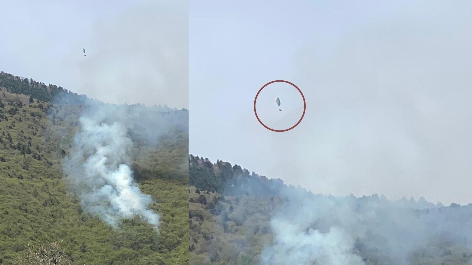 In un primo momento erano presenti dei piloti che stavano stazionando sopra la zona dell’incendio. Finché ci sono loro l’elicottero non può intervenire (nella foto sopra).