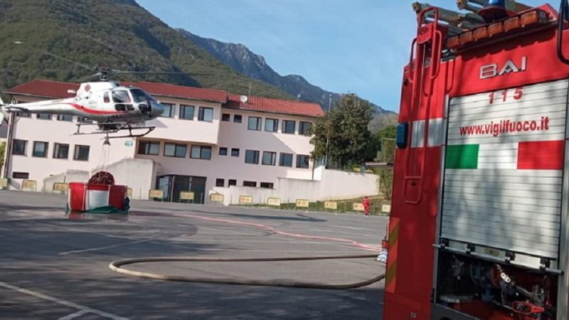 Aggiornamento delle 14.40: l’elicottero è potuto intervenire e sta portando avanti le operazioni di spegnimento dell’incendio nell’area boschiva.