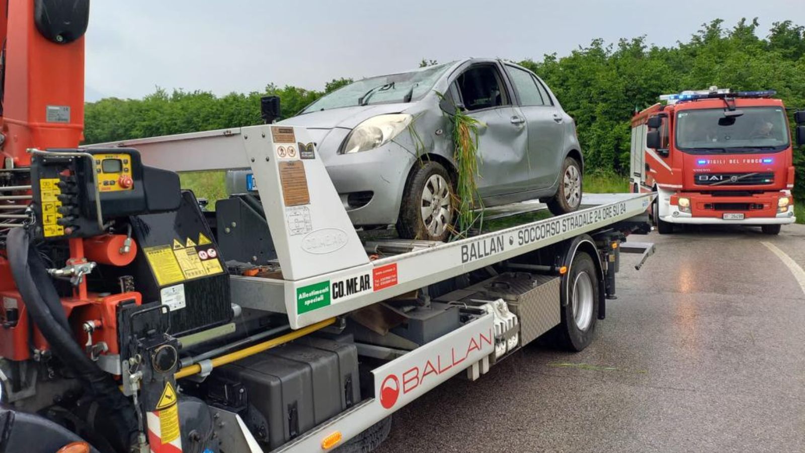 La rimozione dell’auto da parte del soccorso stradale