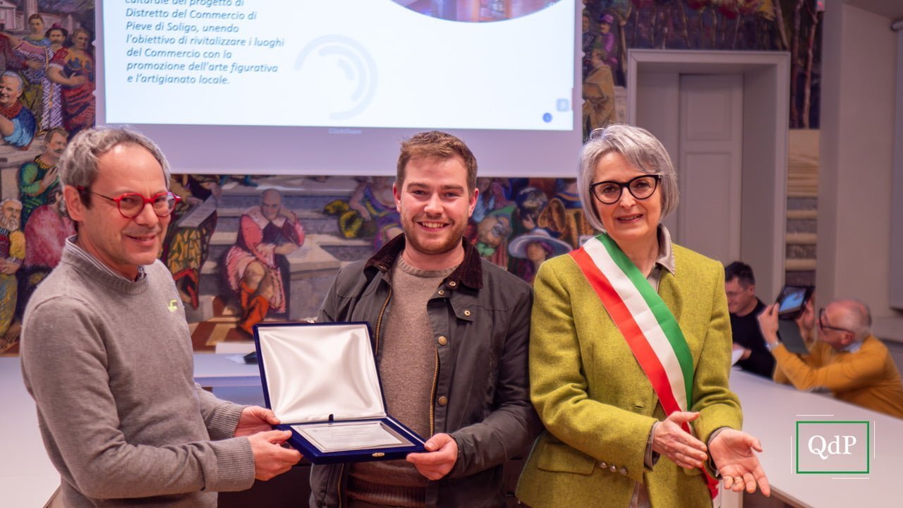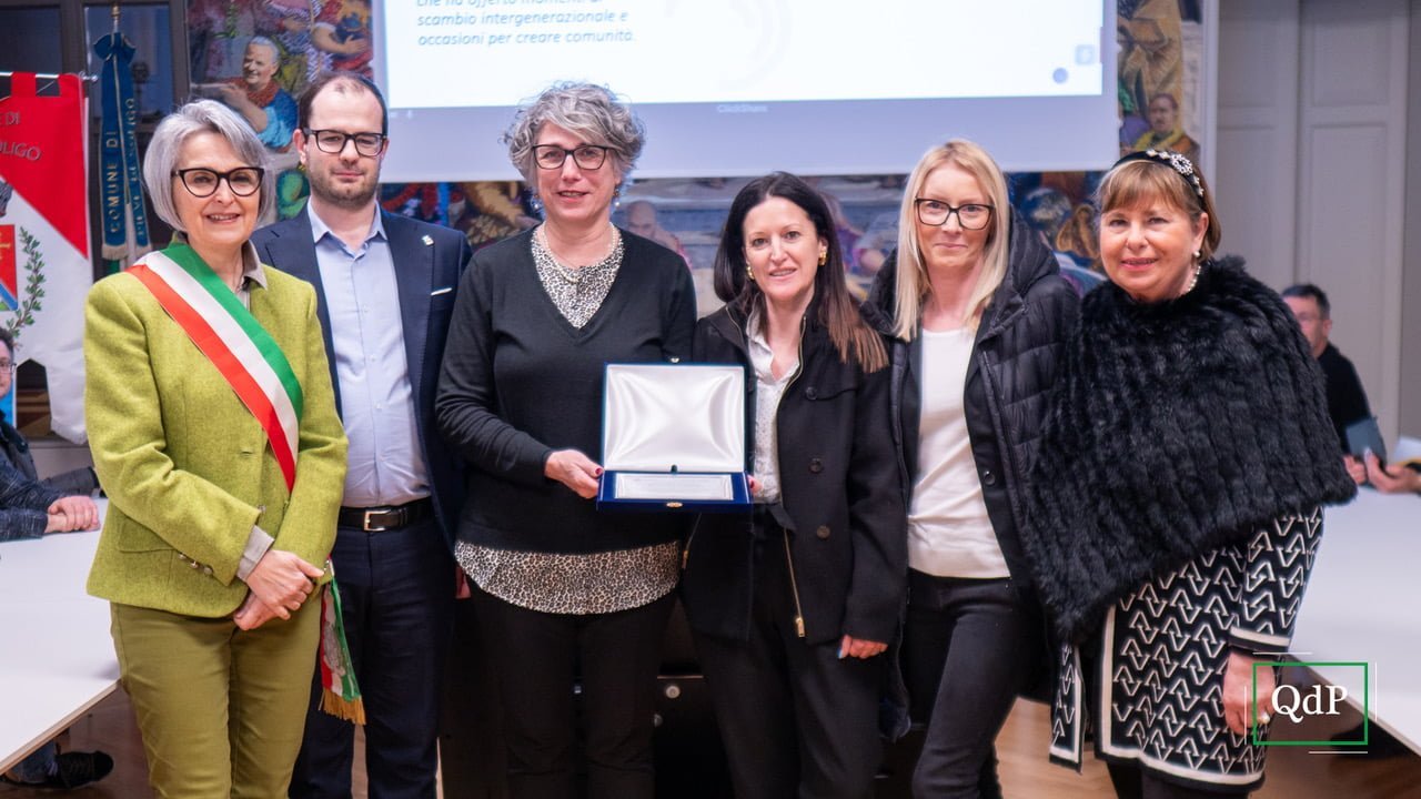 “Con sensibilità sociale e disponibilità, hanno saputo coordinarsi e coinvolgere le associazioni e la pubblica amministrazione in un progetto di animazione per la rigenerazione degli spazi urbani che ha offerto momenti di scambio intergenerazionale e occasioni per creare comunità”. Così la motivazione del riconoscimento consegnato a Dario Bianco e Pietro Colmellere – era assente il terzo premiato, Alberto Possamai – per l’esposizione “Dialoghi” che ha fatto dell’ex cartolibreria Battivelli una vetrina per l’arte oltre che un antidoto al vuoto che minaccia i centri storici.