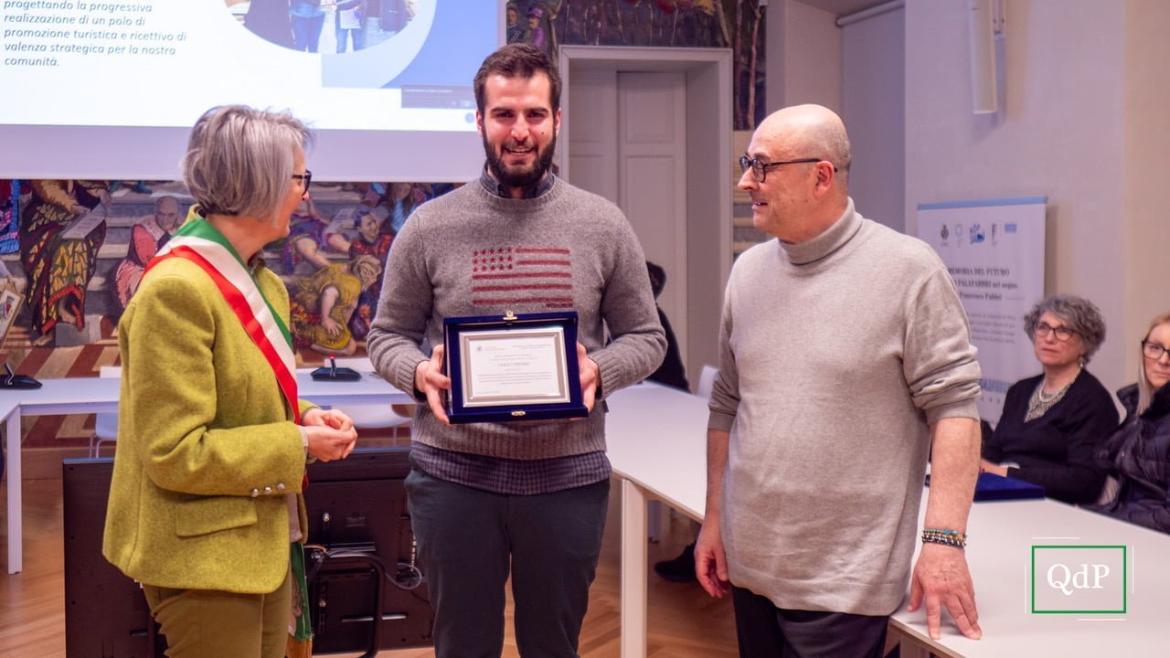 Infine la pizzeria Rico’s di Giovanni, Federico e Benedetta Ricci ha conquistato il terzo posto e così la somma di 2mila euro quale riconoscimento ad un’attività a conduzione famigliare che “con energia giovanile ha unito al recupero di un locale storico un’originale visione di futuro progettando la progressiva realizzazione di un polo di promozione turistica e ricettiva di valenza strategica per la nostra comunità” riporta la targa consegnata a Giovanni Ricci.