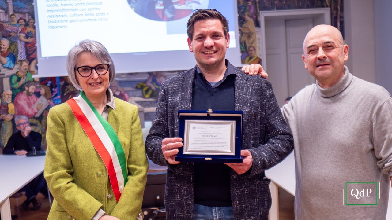 Il primo premio di 5mila euro – 10mila euro il montepremi complessivo – è andato a Mirko Fariello della Pizzeria Tramonti e ad Enrico Sartor della Pescheria Sartor per aver unito le forze mostrandosi “interpreti illuminati del valore sociale delle iniziative di co-working” e, si legge nella motivazione, per aver “unito fantasia imprenditoriale con spirito nazionale, cultura della pizza e tradizione ittico-lagunare”.