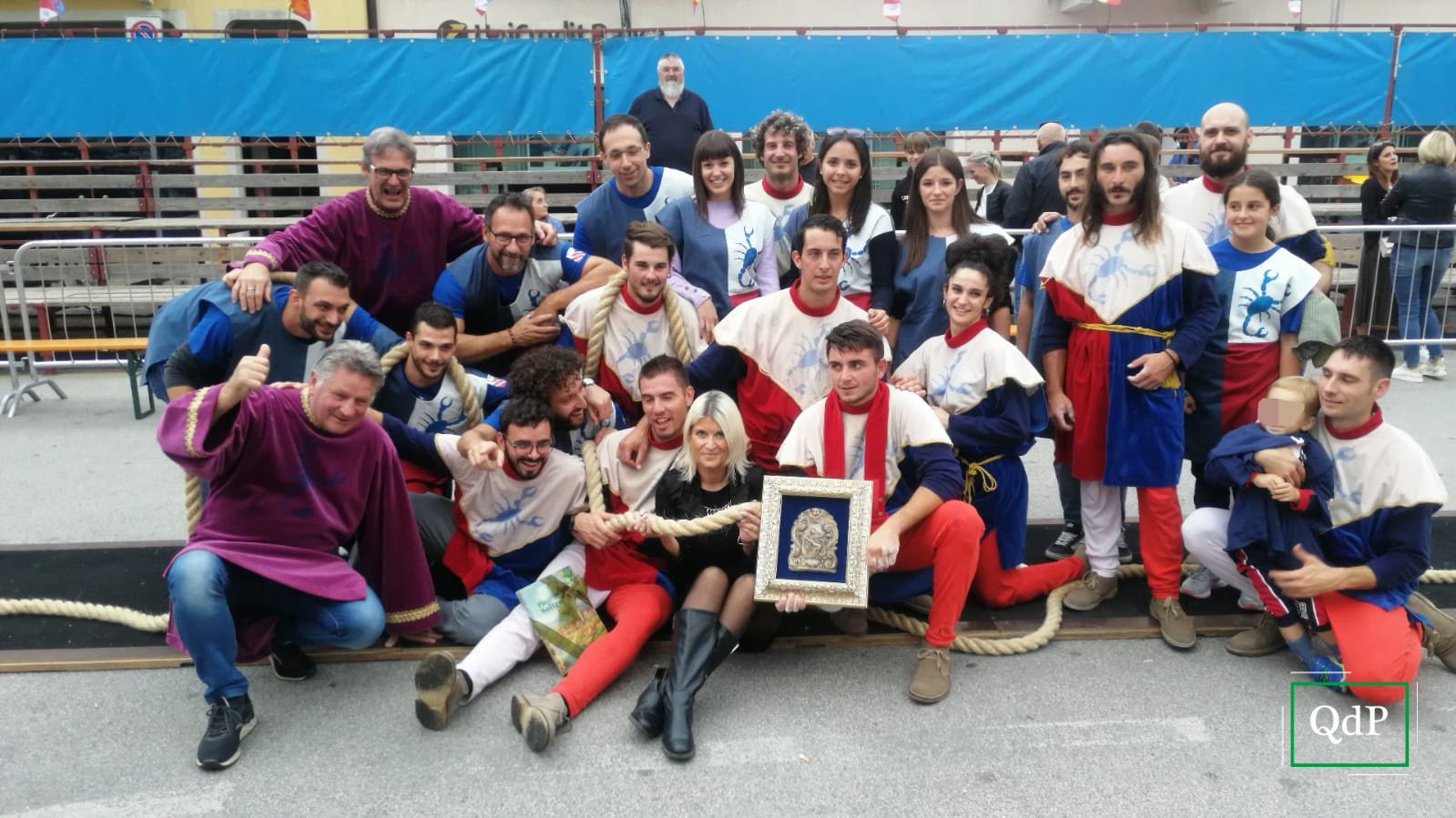 A sfidarsi tra di loro in questo tradizionale Palio delle contrade, due squadre composte da otto atleti ciascuna, da un peso di 620 chilogrammi per gruppo. Squadre che hanno dato il massimo nella loro performance per riuscire a portarsi a casa la vittoria e dare così lustro alla propria contrada.