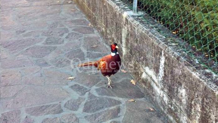 Un fagiano ha fatto visita questa mattina al centro di Pieve di Soligo, in piazza Caduti nel Lager durante il mercato contadino del giovedì, una piacevole sorpresa per gli ambulanti e i loro clienti.