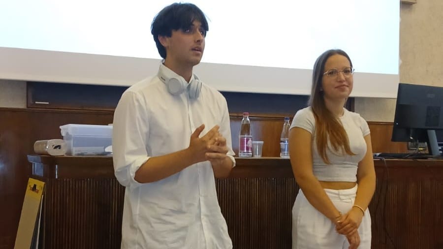 Ad una delle sessioni di lavoro del convegno sono stati invitati come ospiti speciali a presentare la loro testimonianza anche Laura Faldon e Tommaso Moz, studenti del Liceo delle scienze umane che hanno vissuto in prima persona l’anno scorso l’esperienza del fare filosofia con i bambini.