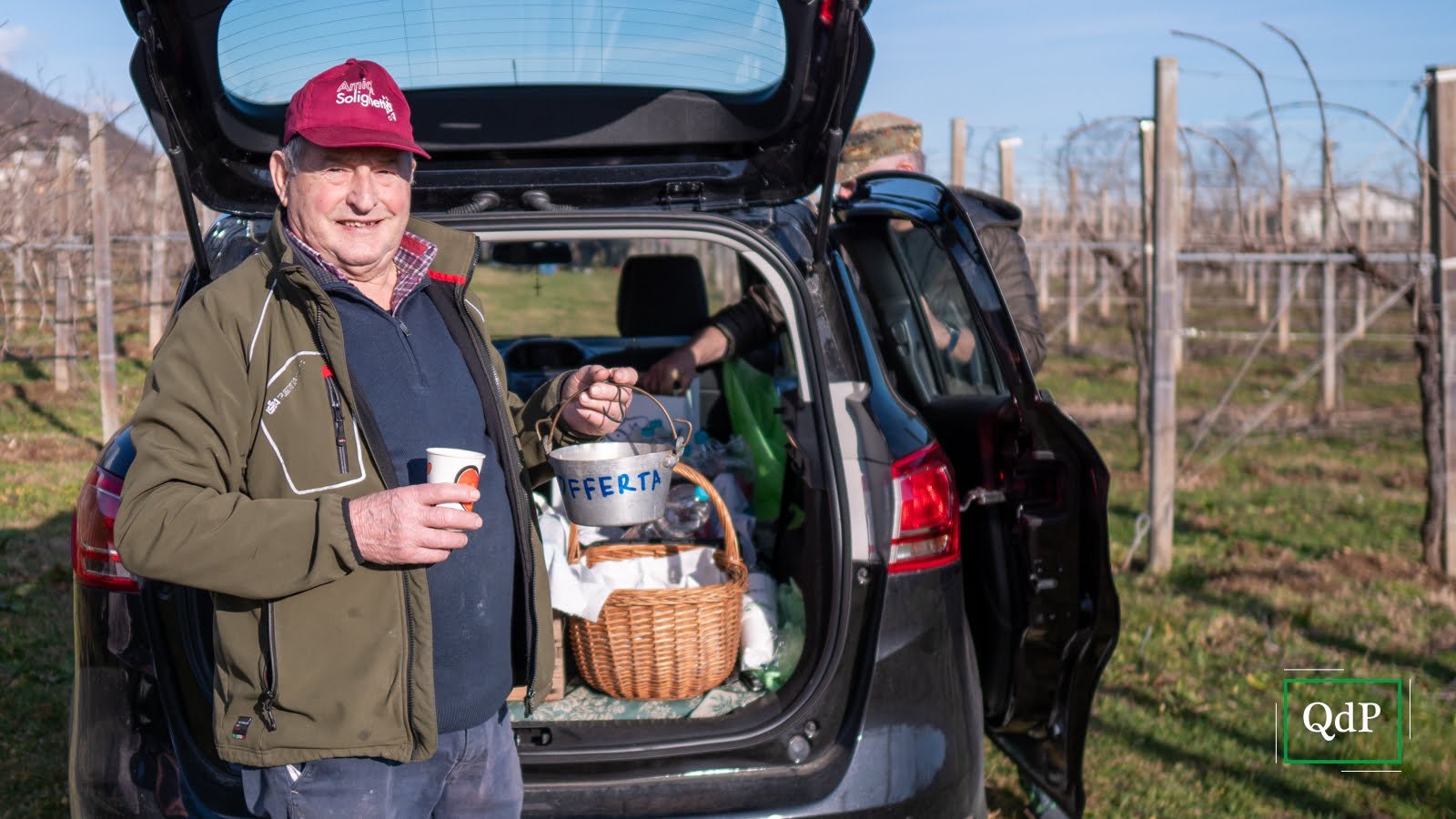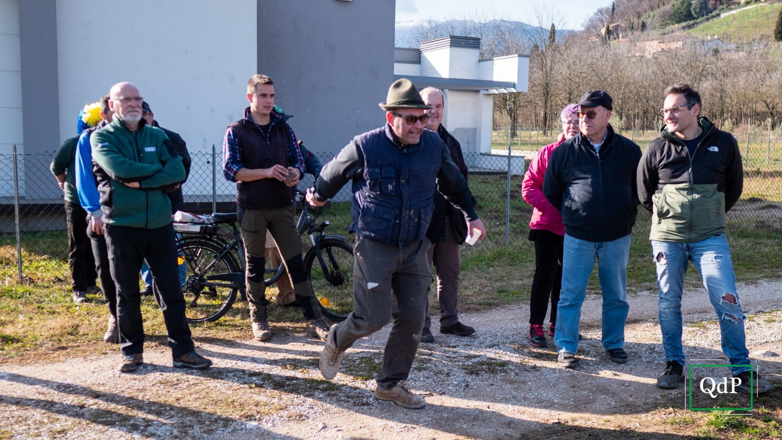Anche ieri, immancabili per tenere le fila del gioco, personaggi come Bepo “Gnocca” addetto alla registrazione e Luigi Padoin in arte “Centomeni” che a bordo di una Panda carica di frittelle e altre amenità ha accompagnato i partecipanti lungo il percorso stemperando gli animi con dolci, pane, salame e (più di) qualche “ombra”.