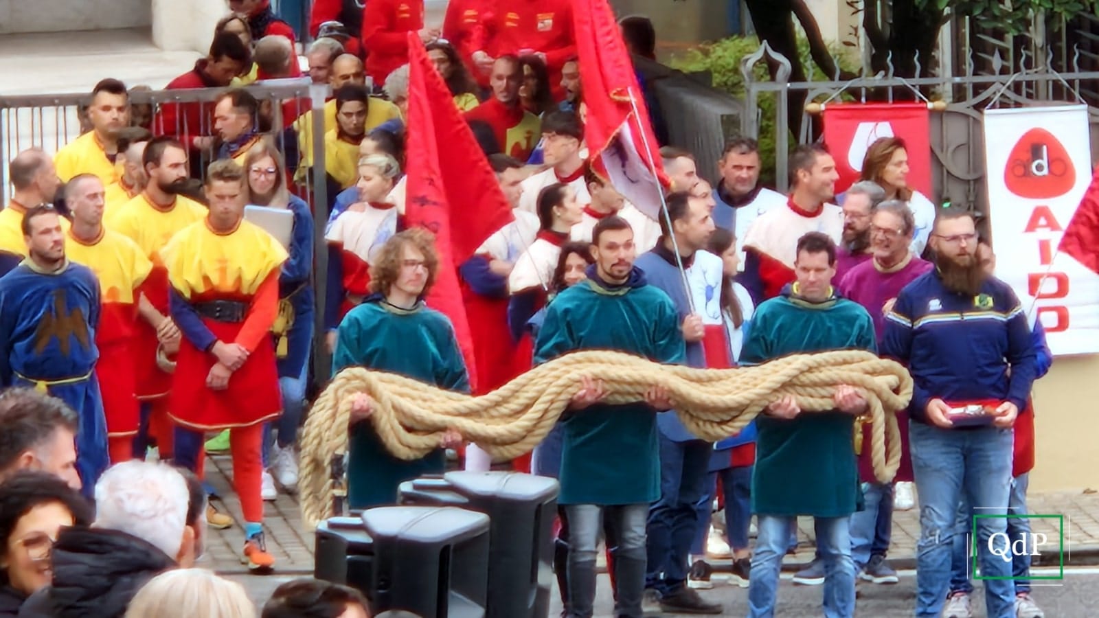 Il pathos dell’appuntamento è aumentato con l’entrara in piazza delle due contrade, della corda e della bilancia, necessaria per pesare i tiratori.