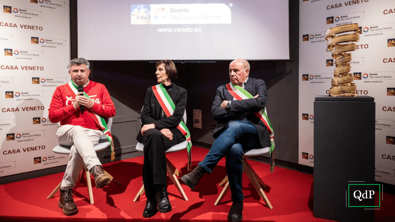 Oggi, giovedì, a Casa Veneto, tra le montagne olimpiche di Cortina d’Ampezzo, si è parlato di questo in occasione della presentazione delle tappe venete del Giro, con gli interventi, tra gli altri, di Paolo Bellino, CEO di RCS Sport & Events, del vicepresidente della Regione Veneto Lucas Pavanetto, dell’assessore regionale Dario Bond, del presidente della Provincia di Belluno, Roberto Padrin, e dei sindaci di Pieve di Soligo (Stefano Soldan), Feltre (Viviana Fusaro) e Alleghe (Danilo De Toni). Presenti anche tre ciclisti di ieri e di oggi, Andrea Vendrame, Sacha Modolo e Diego Bragato.