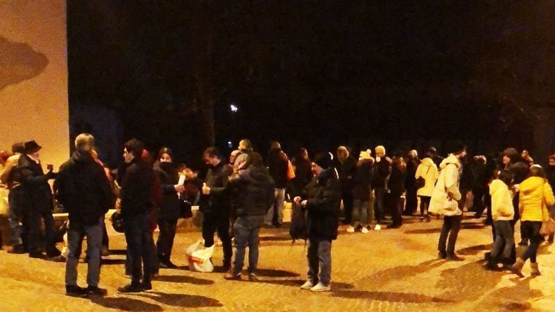 Il ritrovo era previsto alle 18.30 di oggi in “piazza Municipio” (un’indicazione che ha disorientato alcuni arrivati da fuori zona) a Pieve di Soligo con l’invito a portare un bicchiere, una bottiglia ogni 4/5 persone e delle patatine.