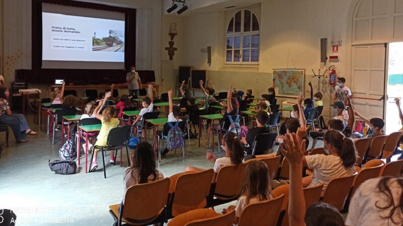 Assieme a Roberto Spader, Campeotto ha spiegato in modo semplice come si prende un treno, ma anche perché prendere un veicolo a rotaia sia un vantaggio pure per l’ambiente.