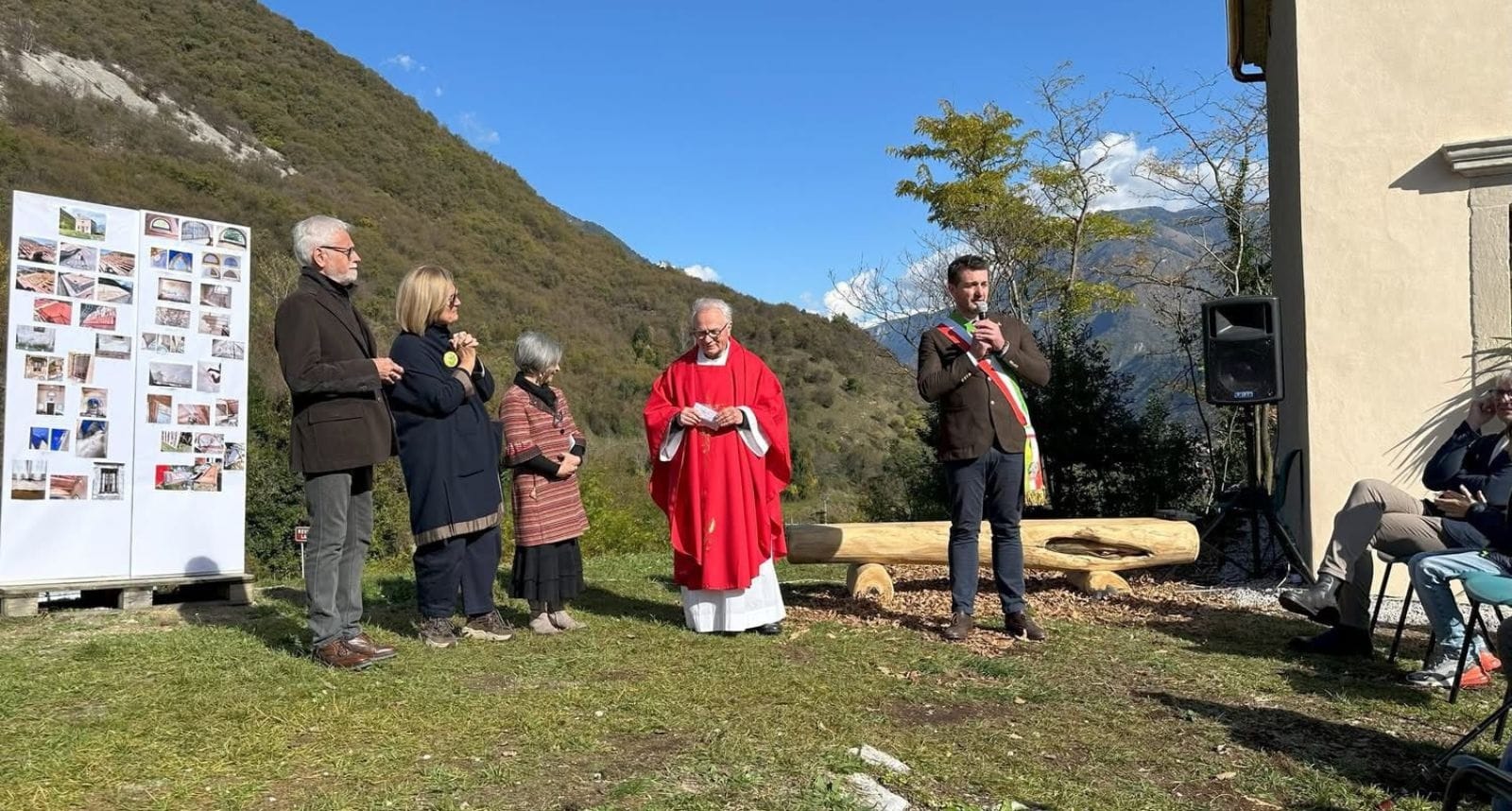 Considerato che la chiesetta era troppo piccola per contenere tutte le persone presenti (quasi un centinaio), la Pro loco di Revine Lago (rappresentata dal presidente Emiliano Bernardi) aveva posizionato delle sedie all’esterno, mentre gli Alpini avevano realizzato delle panchine con i tronchi di ciliegio, sistemate sul prato da loro stessi falciato.