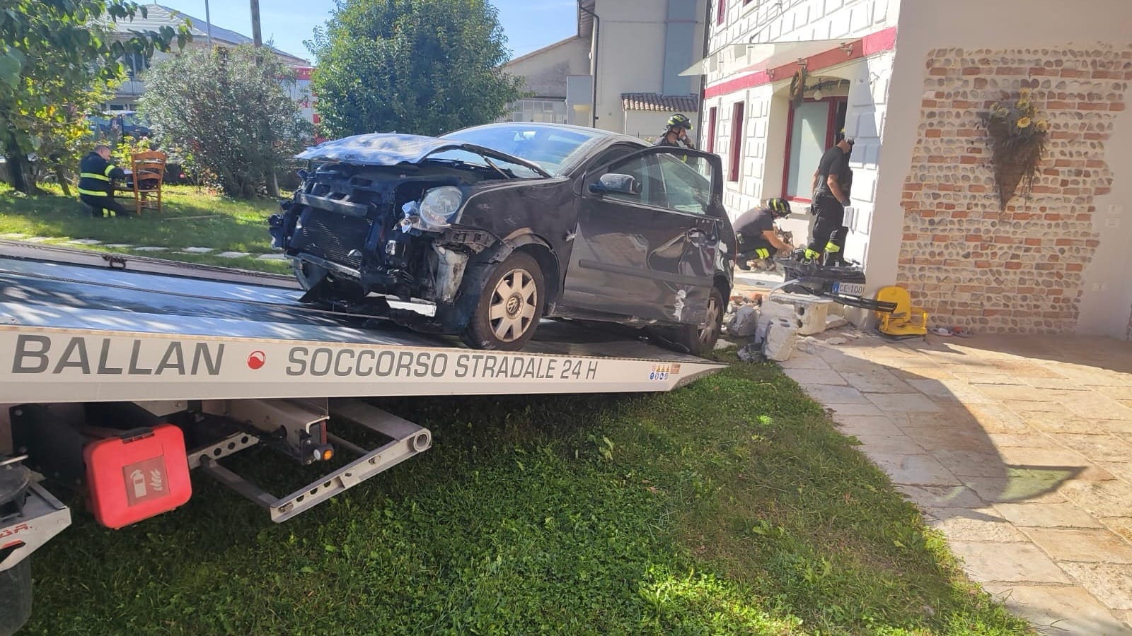 L’automobilista, dopo aver perso il controllo della sua Volkswagen Polo su cui viaggiava anche la moglie, ha attraversato il giardino e ha terminato la corsa contro uno dei pilastri del portico d’ingresso. Fortunatamente, in quel momento, nessuno si trovava in giardino o all’esterno dell’abitazione: le conseguenze avrebbero potuto essere ben più gravi.