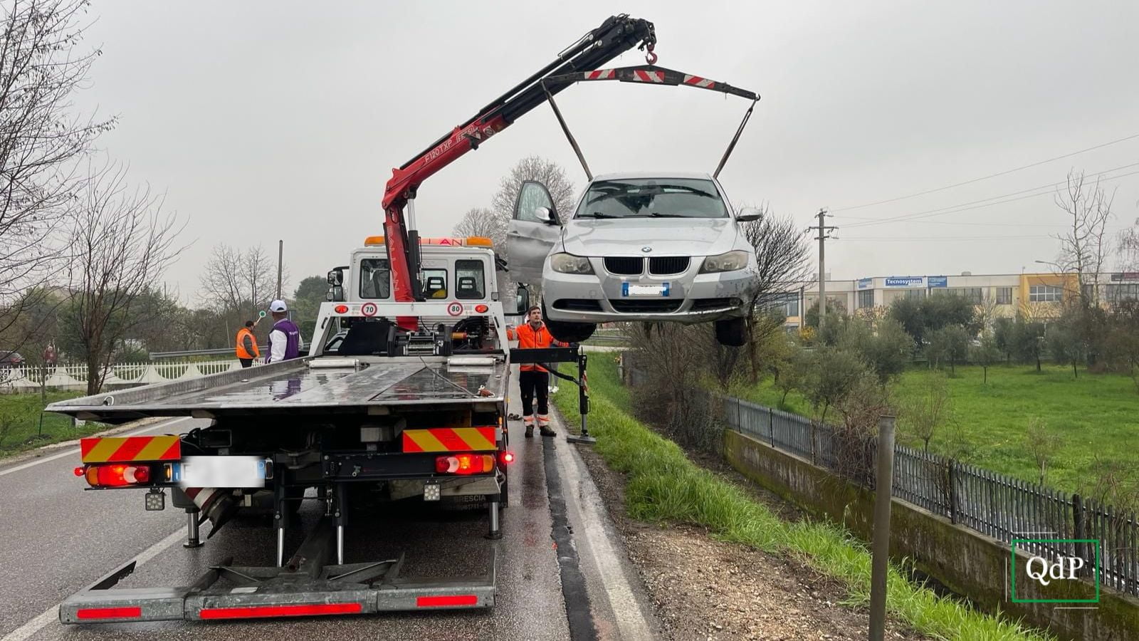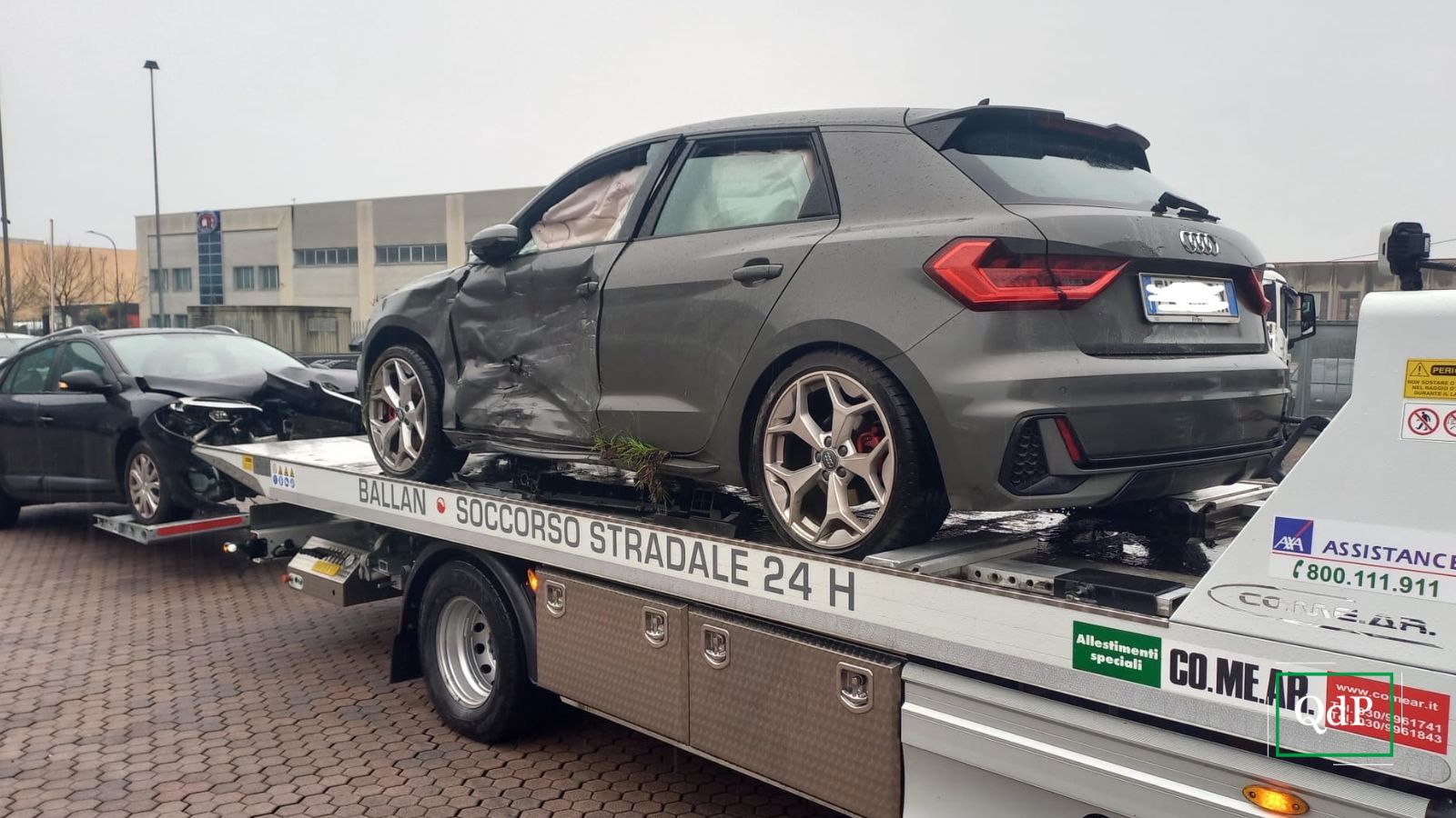 Nell’impatto, l’Audi, danneggiata all’altezza dello sportello posteriore destro, si è rovesciata su un lato, finendo nel fosso vicino alla carreggiata.
