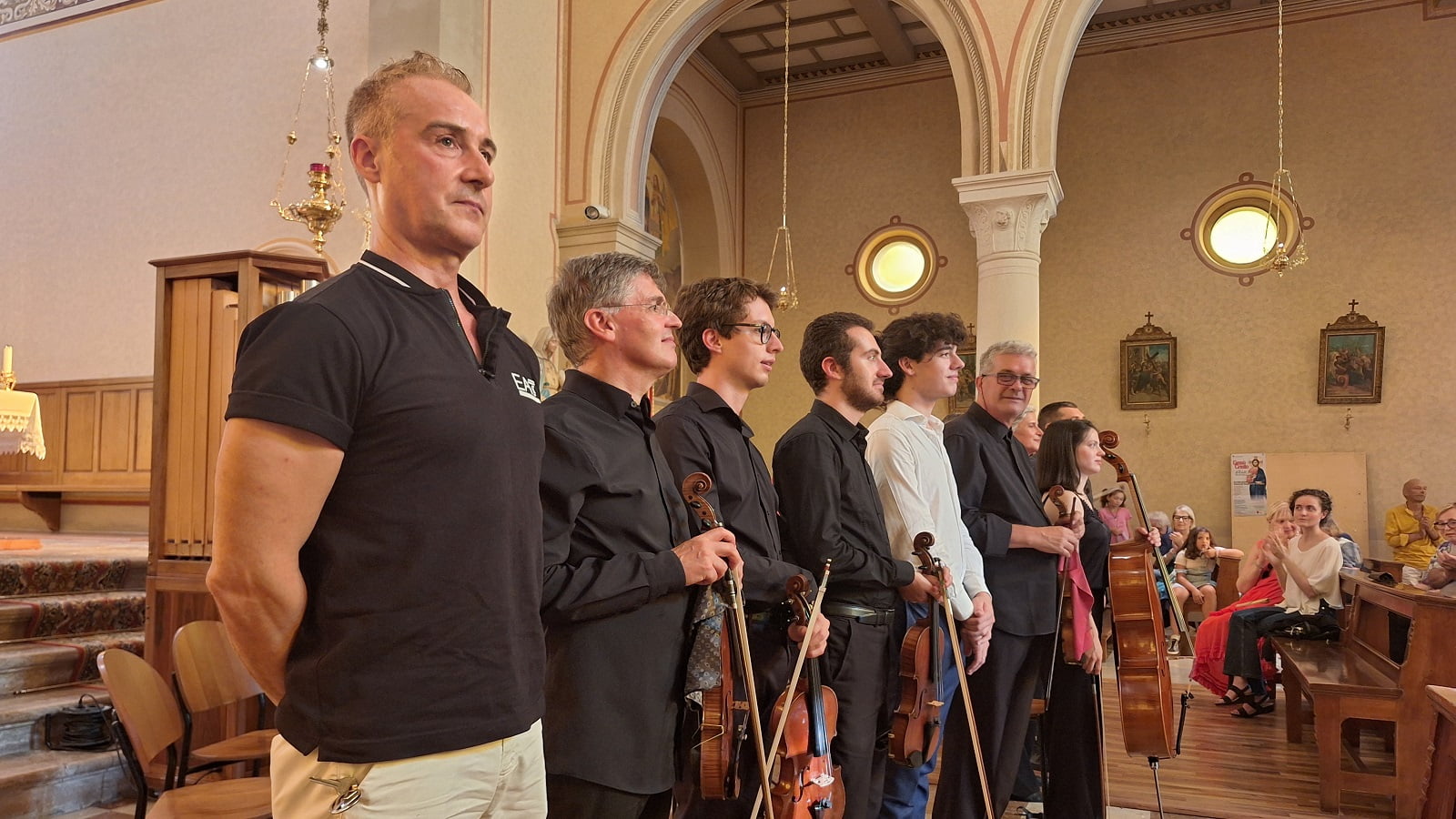 Insieme a loro, da sottolineare le ottime performance dei tre solisti: all’organo portativo, Nicola Lamon ha interpretato con rara maestria il concerto in Fa maggiore per organo e archi in quattro tempi di Haendel; all’arpa, il giovane Kevin Frasson, vincitore dell’audizione 2024 per giovani arpisti del Friuli Venezia Giulia, ha incantato la platea eseguendo il concerto in Si bemolle maggiore di Haendel per arpa, archi e continuo, in tre tempi; al violoncello, la brava Anna Stevanato ha fatto il pieno di applausi con il concerto in do minore per violoncello archi e continuo di Vivaldi in tre tempi. Come detto, felicissima la risposta dei tanti presenti, che hanno seguito con vivo interesse e grande favore tutte le fasi del concerto. Allo stesso tempo, molto apprezzata l’illustrazione dei tesori di storia, fede e arte della chiesa di San Giorgio di Collalto da parte dell’esperto IBT Giuliano Ros.