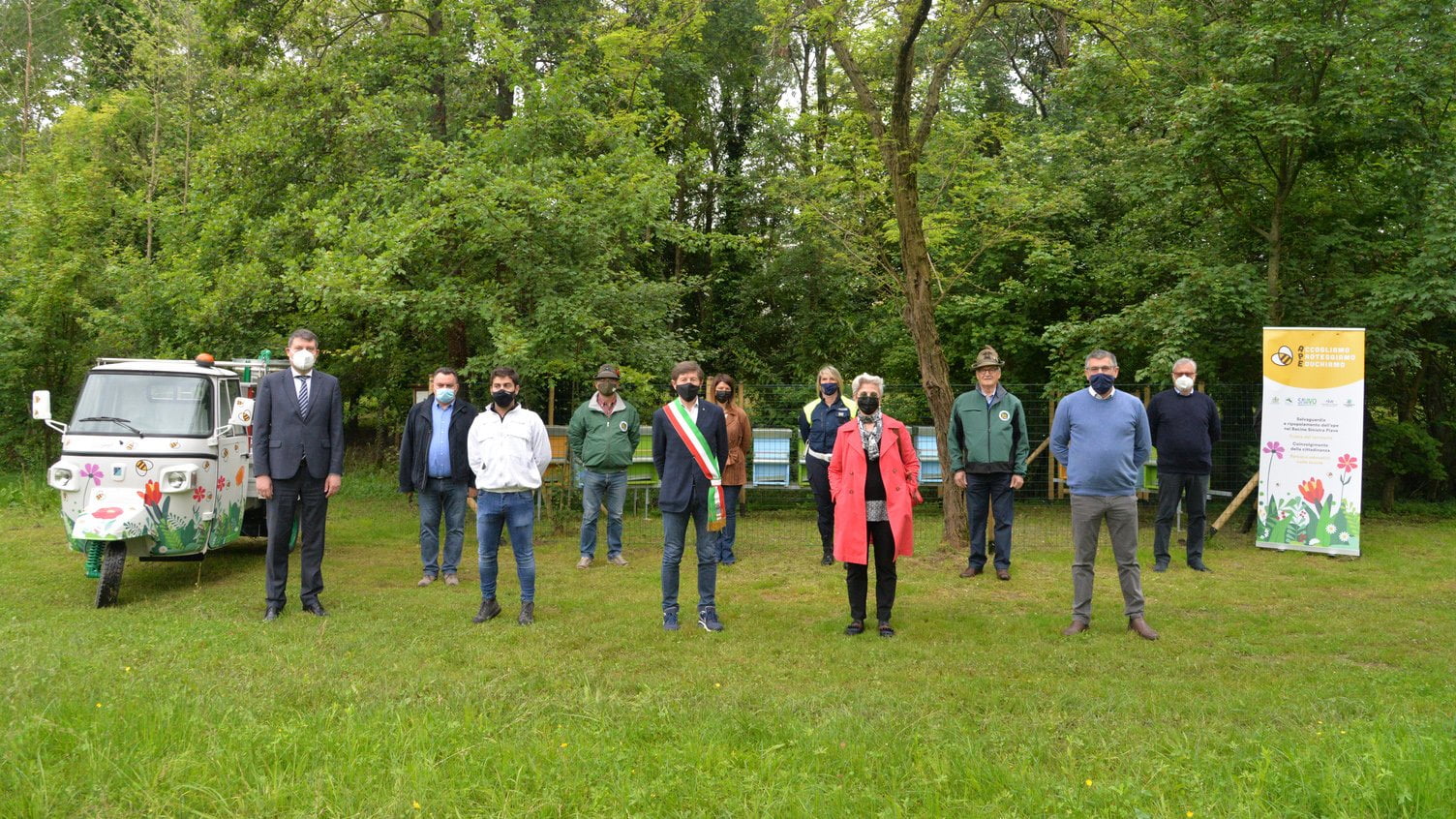 Questo progetto è un esempio di sinergia fra tanti soggetti, non ultimi gli Alpini di San Fior che, con gli assessori Luigi Tonetto e Diego Zanin, hanno realizzato il recinto che delimita l’area dove sono stati messi gli apiari.