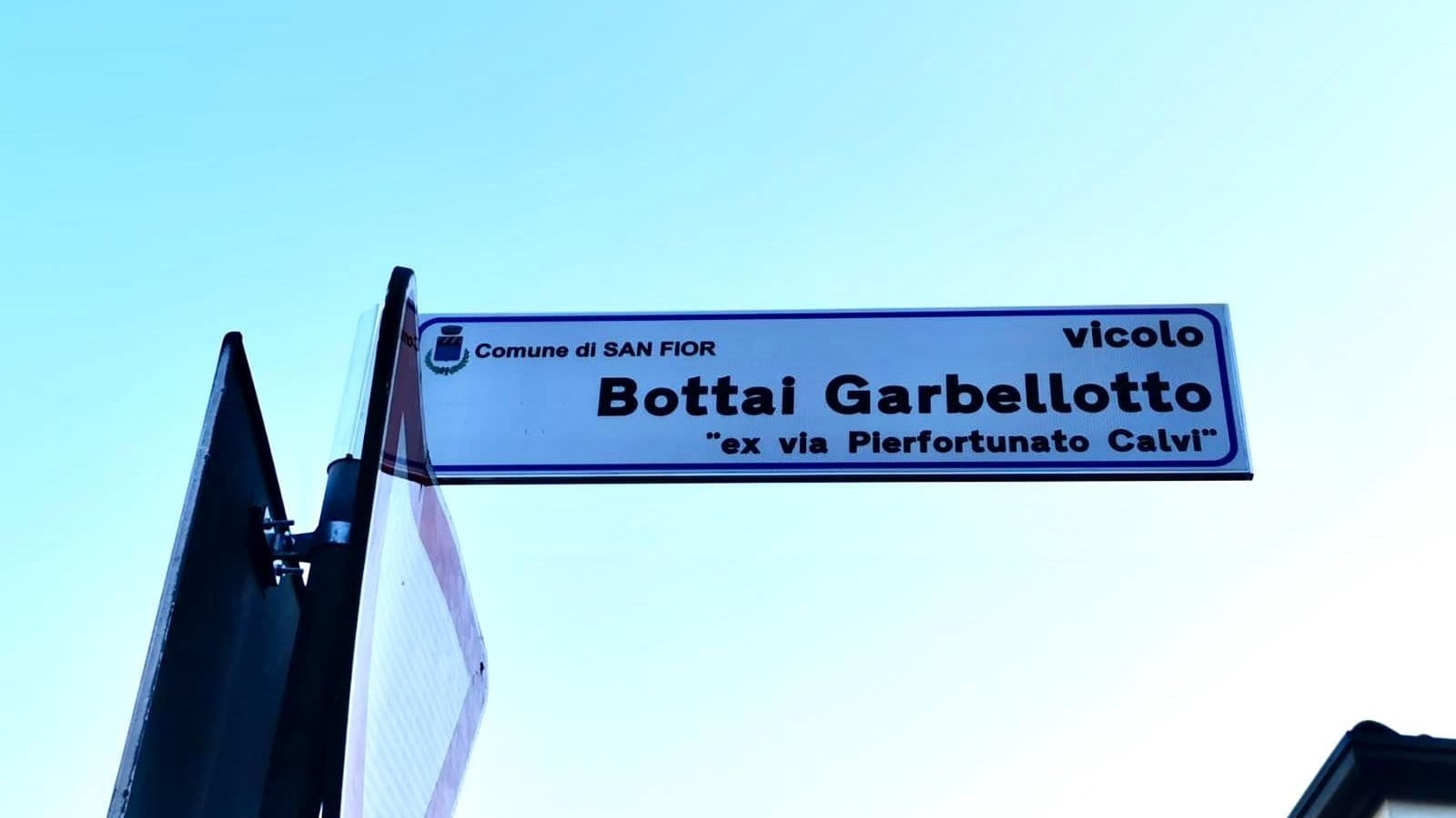 La cerimonia di scoprimento del vicolo (ex via Pierfortunato Calvi) ha visto la presenza del sindaco Gastone Martorel e di una rappresentanza della famiglia Garbellotto.