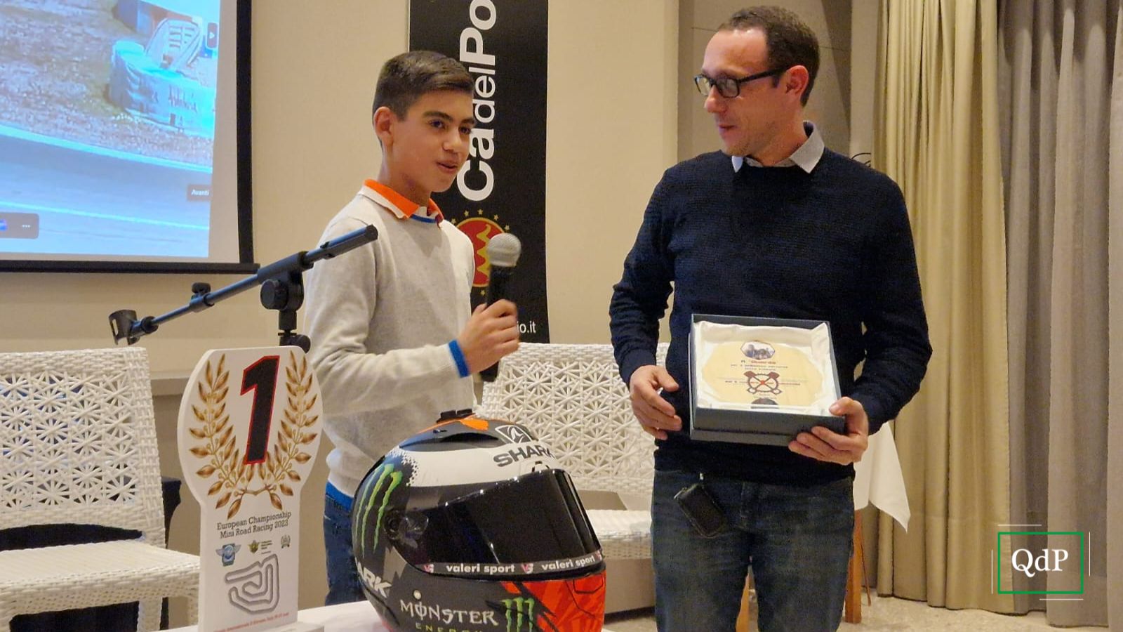 “Guido le moto, così dicono”, è la premessa ironica fatta dal 14enne in apertura della sua presentazione, dove ha ripercorso le tappe delle sue vittorie sportive, facendo un riferimento ai prossimi appuntamenti previsti a Misano, a Imola e al Mugello.