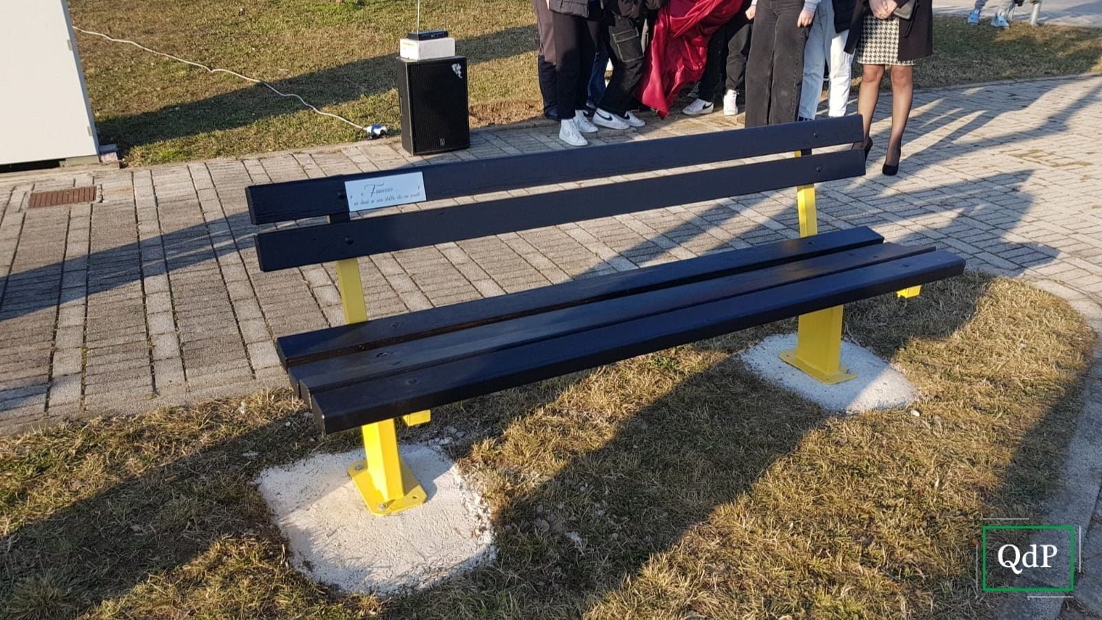 Inaugurata in piazza a Santa Maria di Feletto la panchina per Francesco Favaro: “Ciao Checco, questa panchina è per te”