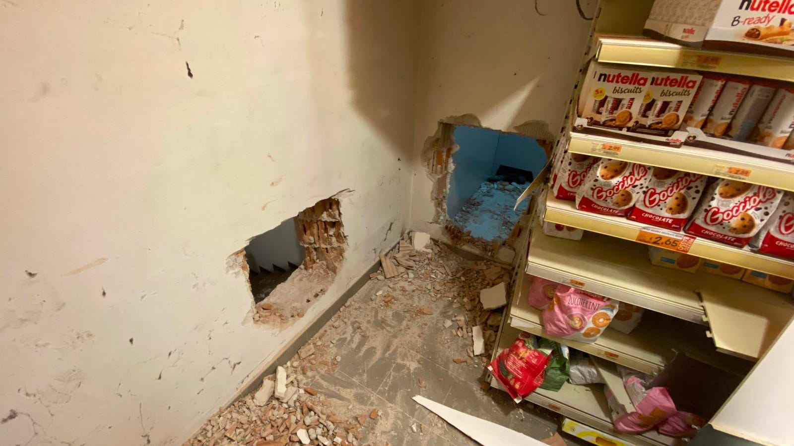 Dopo aver tagliato la recinzione, la banda è entrata nella zona degli spogliatoi e, a mazzate, ha fatto due grossi buchi nel muro: “Probabilmente erano dei professionisti – spiega Federico Scottà, titolare del supermercato – perché sono entrati prima delle 23 e l’allarme è suonato solo dopo mezzanotte”. Un ora in cui la banda ha potuto operare indisturbata, creandosi il passaggio per entrare nel supermercato.