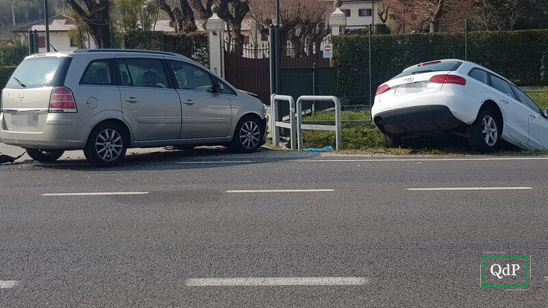 Le vetture sono finite entrambe fuori strada, riportando danni ingenti: l’Opel ha sfondato il cofano a causa dell’impatto, mentre l’Audi è finita in una canaletta che costeggia la via e una delle portiere si è seriamente danneggiata.