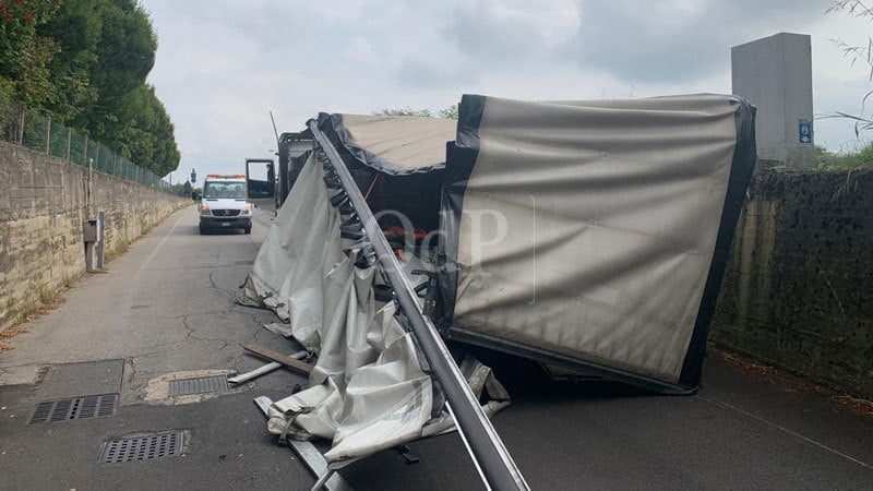È successo pochi minuti prima delle 13: l’autista pare sia stato ingannato dal navigatore, anche se a occhio è evidente che un camion telonato alto quasi 4 metri non poteva passare, ma tant’è: ha attraversato lo stesso rimanendo incastrato, danneggiando vistosamente il camion e perdendo parte del carico.