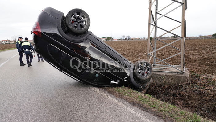 Non sono rimasti coinvolti per fortuna altri veicoli. Sul posto è intervenuta l’ambulanza del Suem 118 di Conegliano che ha trasportato il conducente, con alcuni politraumi pare non gravi, al pronto soccorso per le visite e le medicazioni del caso. Per i rilievi della fuoriuscita autonoma è arrivata una unità mobile con furgone della Polizia Locale. Il traffico in via degli Alpini ha subito dei lievi rallentamenti: l’auto infatti ha concluso la sua corsa di traverso e a ruote all’aria per circa metà della carreggiata.