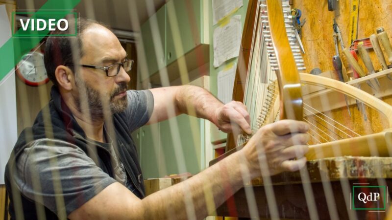 “Teniamo presente che la tensione di un’arpa varia dai 300 ai 600 kg quindi tutto deve essere perfetto nella costruzione. Basta un minimo errore e devi ricominciare da capo”.